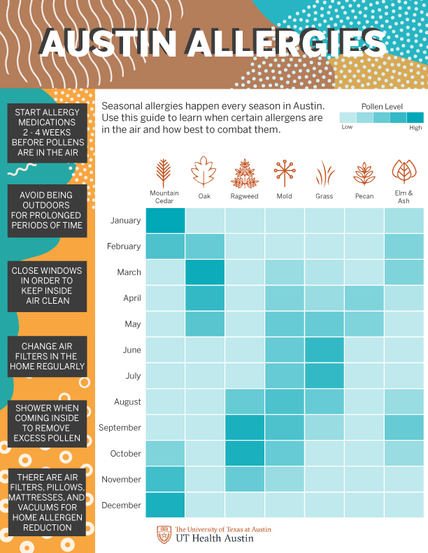 Our love for Central Texas is constantly being tested by seasonal allergies. Summertime grass and fall ragweed join forces with winter cedar and spring oak pollen, challenging us to remain looking and feeling our best all year round. Not to mention the lovely molds and dust that are always present in the air—irritating on more than one level. The sacrifices we Austinites have to make to enjoy the live music capital of the world are immense, but alas, I think we can all agree, worth it. 10-30% of the U.S. population suffers from seasonal allergies, but you can get ahead of the game by knowing when allergens are high and the best ways to combat them.