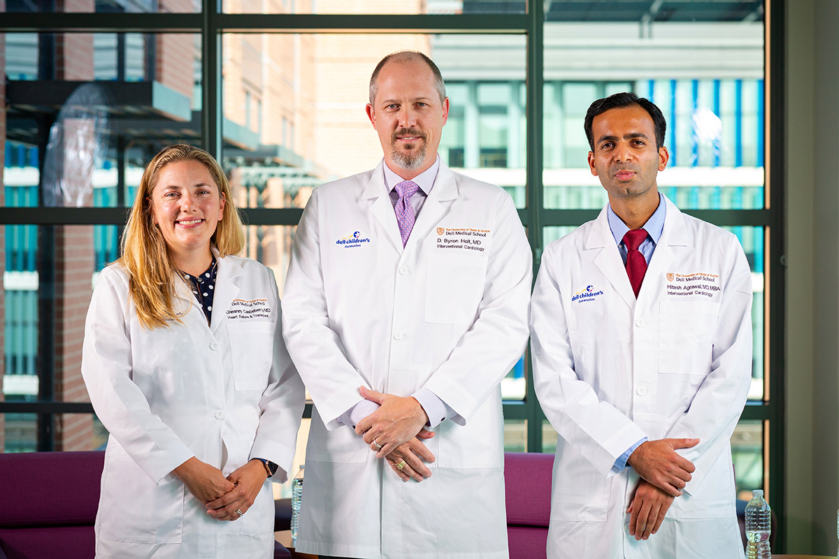 The Texas Center for Pediatric and Congenital Heart Disease, housed at Dell Children’s Medical Center, diagnoses, treats, and manages the care of children and adults with heart diseases and defects, including aortic coarctation, congenital heart disease, heart failure, pulmonary atresia, pulmonary valve stenosis, single ventricle defects, ventricular septal defects, and more.